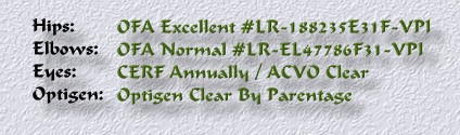 Wiscoys Irish Lace At Brimar, CGC, TDIA, RE, CD, WC